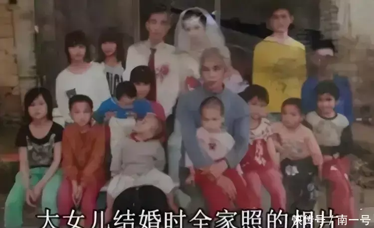 2016年,一张梁家的全家福在网上火了,照片里的梁二头发花白,看着已是花甲之年,身边的妻子陆红兰却满脸年轻,夫妻俩围着十几个孩子,其中还有个裹在襁褓里的小婴儿。
